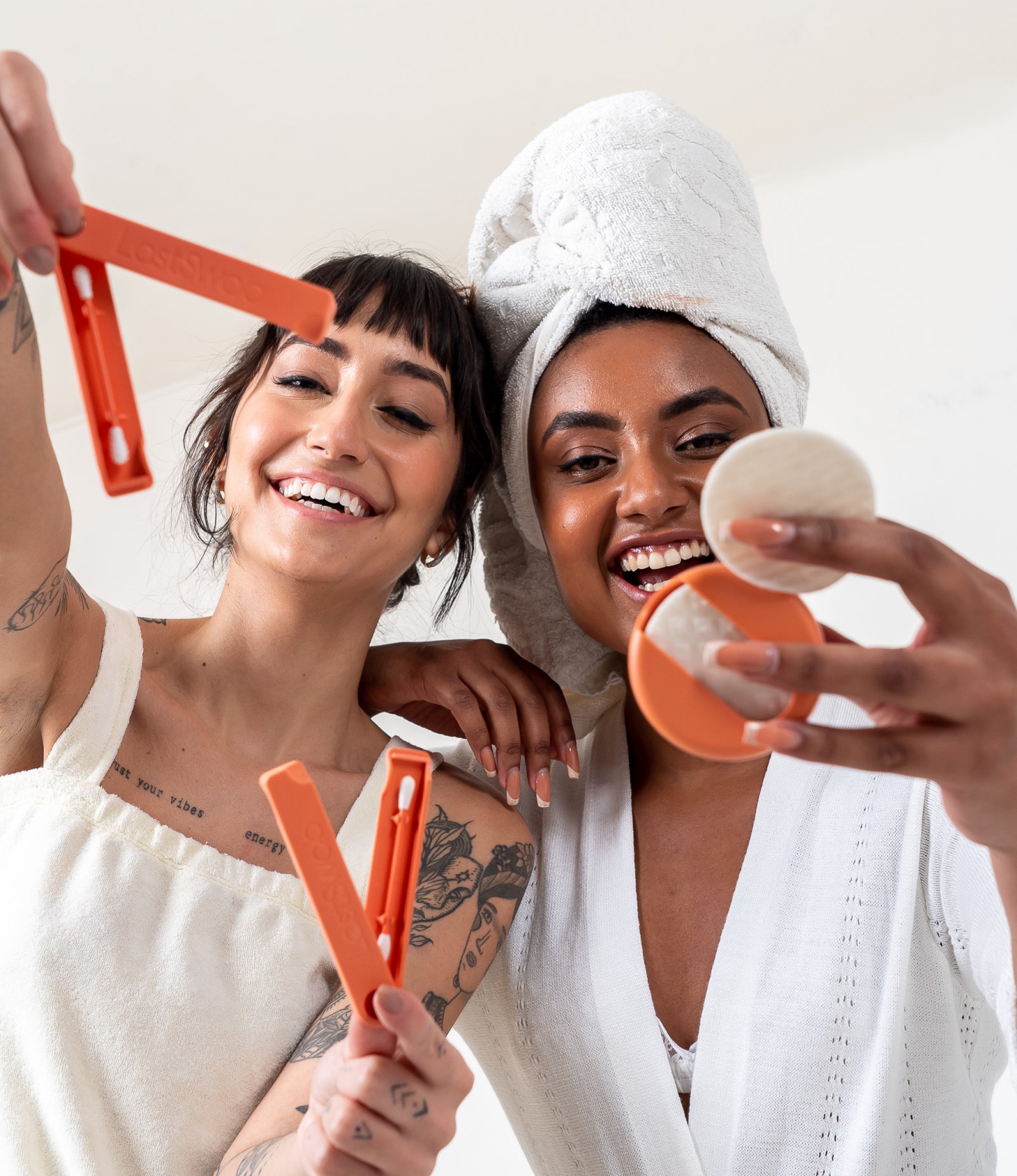 LastRound è naturalmente molto rigido, ma diventa soffice e meraviglioso da usare quando aggiungi un po' d'acqua. Spremi via qualsiasi eccesso prima di aggiungere il tuo solvente, tonico o altri prodotti (non ti preoccupare, non verranno diluiti e il disco assorbe solo la quantità giusta).